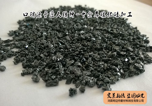 黑碳化硅是硅的一種碳化物,分子為SiC是有石英砂和焦粉在高溫下還原反應(yīng)生成.密度為3.18/Cm2,莫氏硬度在9.2--9.5之間,顯微硬度3300kg/Cm3.硬度高.耐高溫,遇強(qiáng)酸,強(qiáng)堿不起反應(yīng).導(dǎo)電導(dǎo)熱性好.具有很強(qiáng)的抗輻射能力.主要用于,硬度合金、鈦合金、不銹鋼、銅、鋁、鋅、陶瓷、、石材、瑪瑙、玉器、高級珠寶、電子元件的研磨及拋光。還可以制造磨具、高級耐火材料。